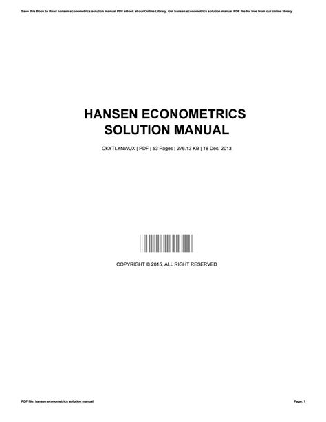 Read hansen-econometrics-solution-manual mobipocket BookBoon